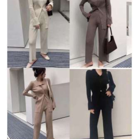 Long collar knitted top with pants